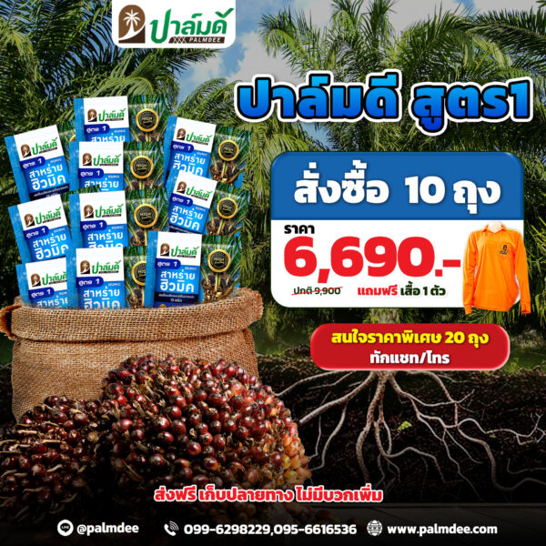 โปรโมชั่น 10 ถุง สูตร 1 แถมฟรี เสื้อปาล์มดี 1 ตัว
